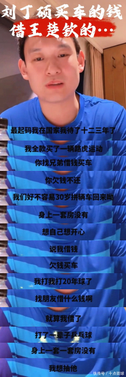 看得出来刘丁硕关于这么的坏话是相等歧视,除了斥责他借钱乃至欠钱买车以外,还扯上了他的好一又友王楚钦,这些齐是让刘丁硕相等不满的原因,紧接着他还宣称:“就算我借了,东谈主家能借给我,东谈主家能借给你吗?我打了一辈子乒乓球,身上连一套房齐买不起,就念念买辆车让我方欣慰惬心一下,还不能吗?说这话的东谈主如果在我眼前,我念念抽他!”