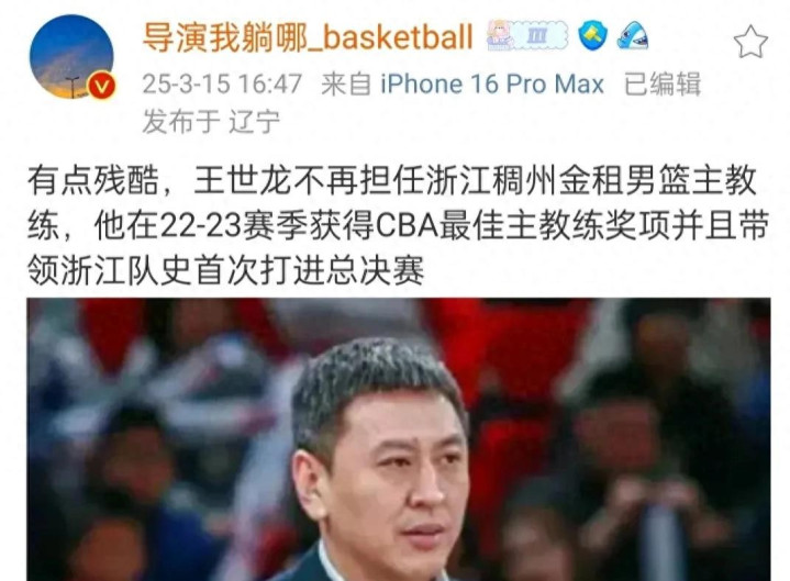 其实,在CBA联赛中,往往更换主帅并不是什么簇新事。但像王世龙这么,在赛季末一会儿被解职的情况,也曾少有。比拟之下,辽宁队的杨鸣就运道得多。一样是输给南京同曦,辽宁队却莫得因此换帅,这阐发了什么?