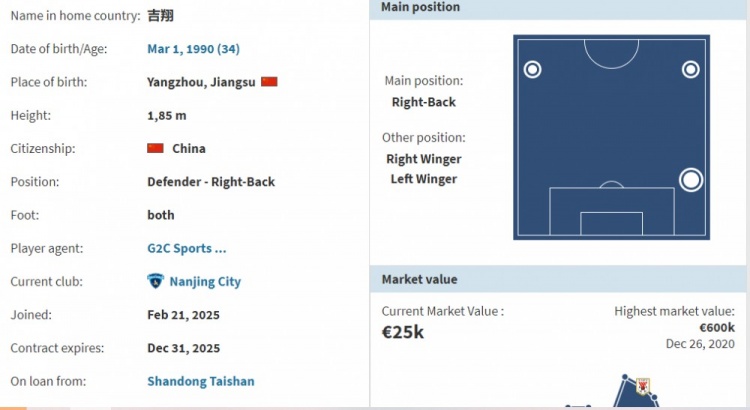 据悉,吉翔租出加盟南京城市一个赛季,租出费为40万东说念主民币。上赛季,吉翔就租出至南京城市,代表球队出战16场,其中7次首发。