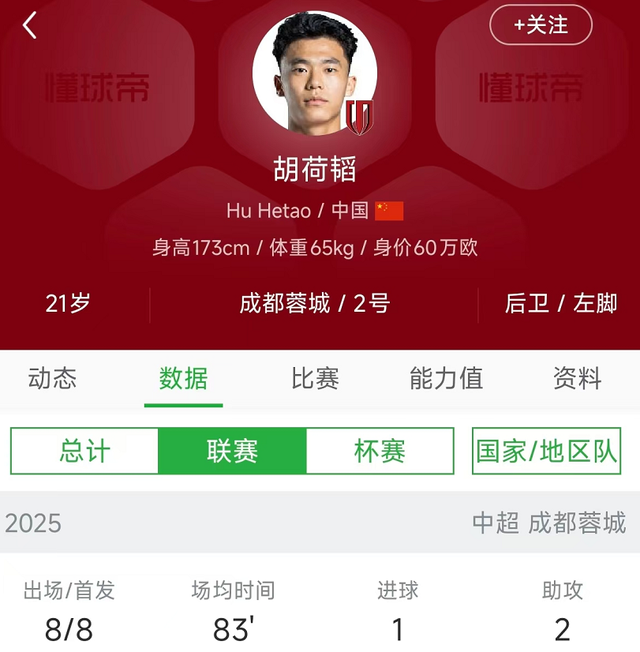 胡荷韬当今如故坐稳中超主力,再加上8场独造3球,平直打出了中超顶级后卫的数据,按照这个趋势发展下去,他确切尽头有但愿罢了留洋梦思,非凡是淌若本年景皆蓉城大致冲击中超冠军的话,胡荷韬也不错平直复制武磊中超夺冠后登陆欧洲赛场的得手蹊径。