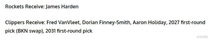 快船得回:范乔丹+芬尼史姑娘+霍勒迪+27年首轮签+31年首轮。