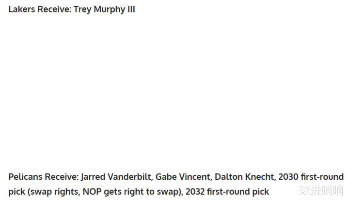 鹈鹕得回:范德比尔特+文森特+克内克特+2030年首轮+2032年首轮。