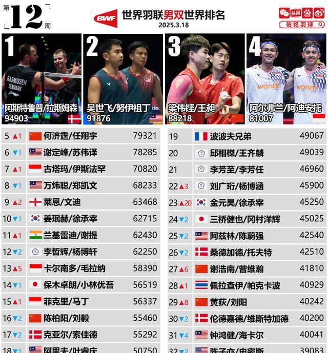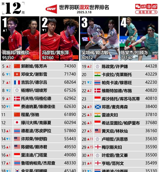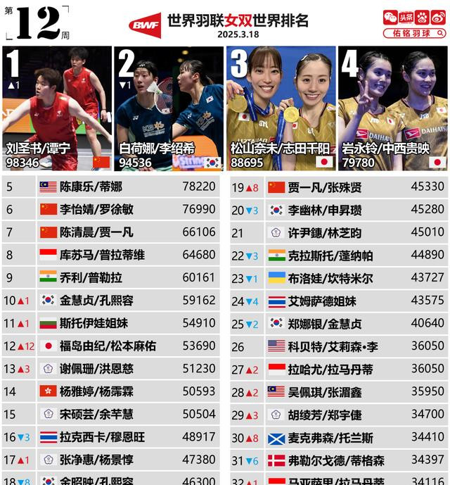 3月18日,天下羽联更新第12周天下排行,资格了全英公开赛的“大战”,各个单项选手的排行皆有大幅度的交流,其中女双、混双两个单项的天下第一皆发生了变化,国羽选手的排行大部分皆有小幅高潮!