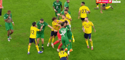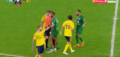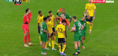 补时第6分钟,迈拉希击打菲利克斯,裁判出示红牌将其罚下,吉达国民少打1东谈主。